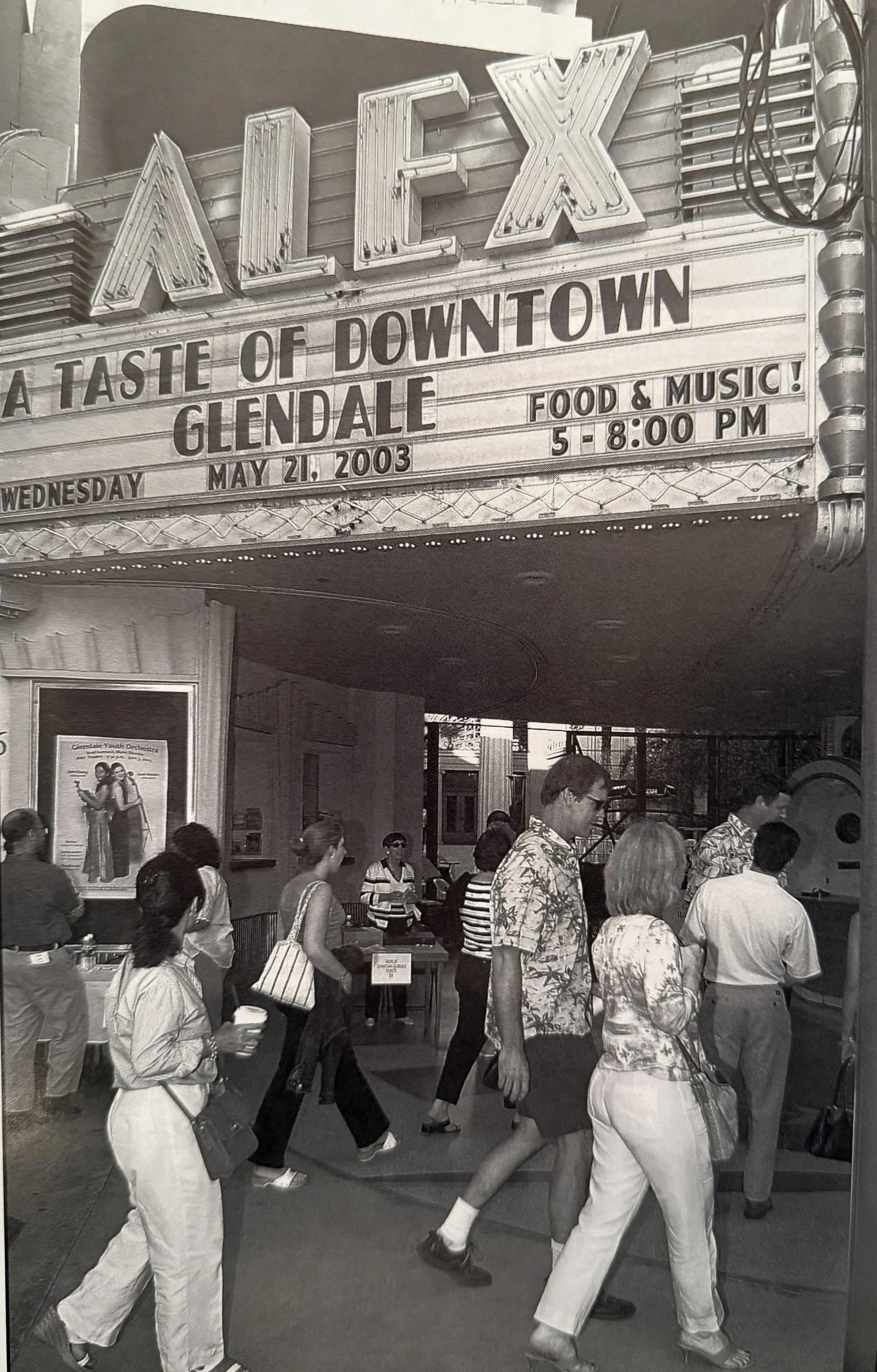 In December 1990, the Glendale Redevelopment Agency resolved that the Alex was "worthy of preservation" and would commit to revitalizing it as a focal point of community and performing arts activities. The new 21-member Committee for Arts at the Alex (CAA), with "individuals representing various organizations who are keenly interested in the future of the Alex,” included TGHS board members Andrea Humberger and Dave Smith.